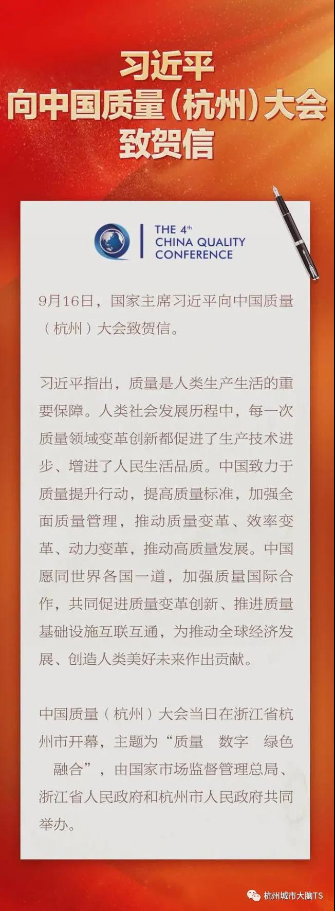 9月16日,中国质量(杭州)大会在浙江杭州开幕。国家主席习近平向大会致贺信。